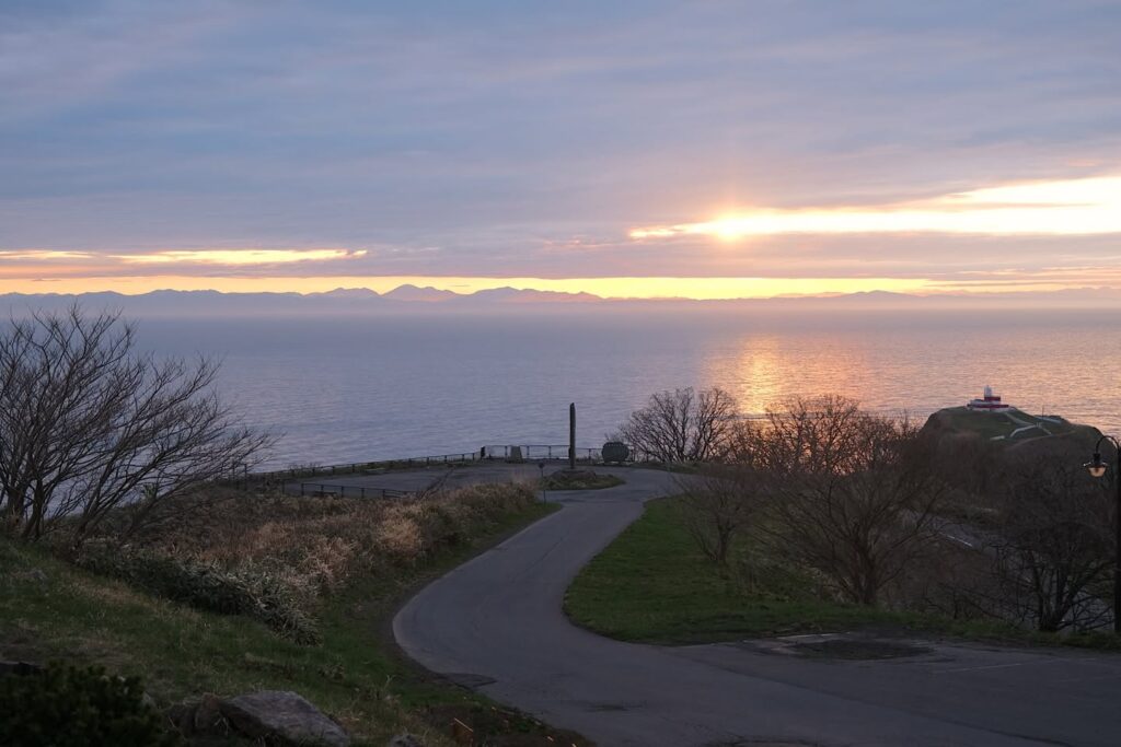 岬に佇む「ホテルノイシュロス小樽」—ホテルを出ると、増毛山地から美しい朝日が昇る