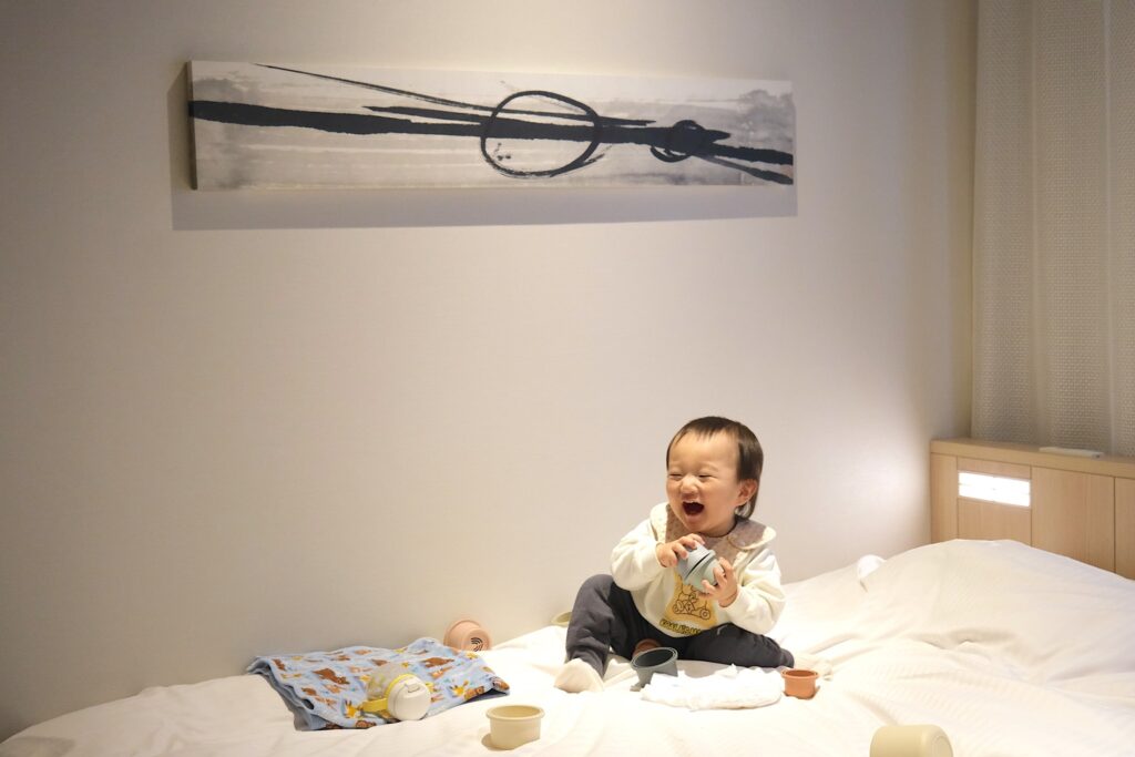 離れのお部屋で遊んだ後は、我が子とお昼寝。旅のスタイルがガラリと変わる実感