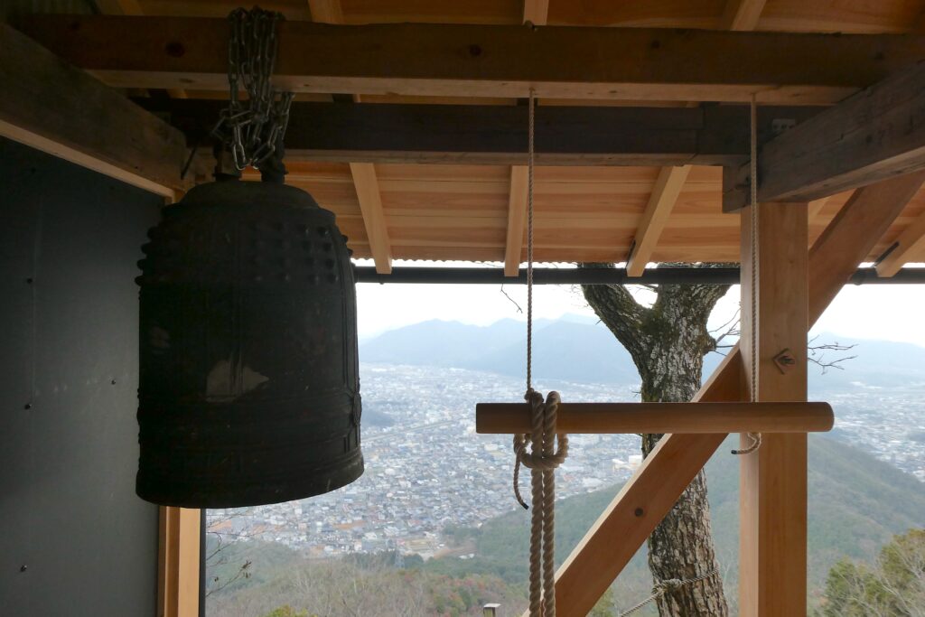一年の締めに、矢筈山の山頂で鐘を鳴らす。来年も素晴らしい登山と、山の仕事ができるように…